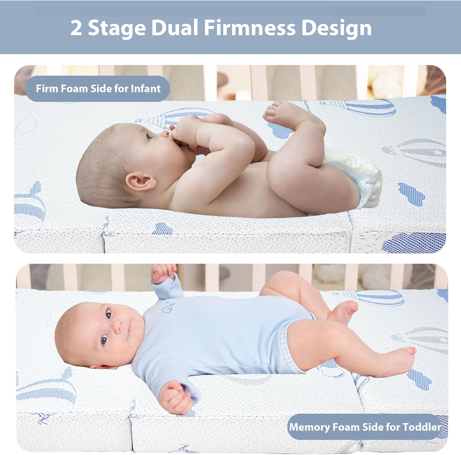 Trifold Pack and Play Mattress Pad, 38″x 26″ Dual-Sided Memory Foam Pack N Play Mattress for Playpen Playard, Soft Breathable Balloon Printed Mini Crib Mattresses for Baby Toddler 2