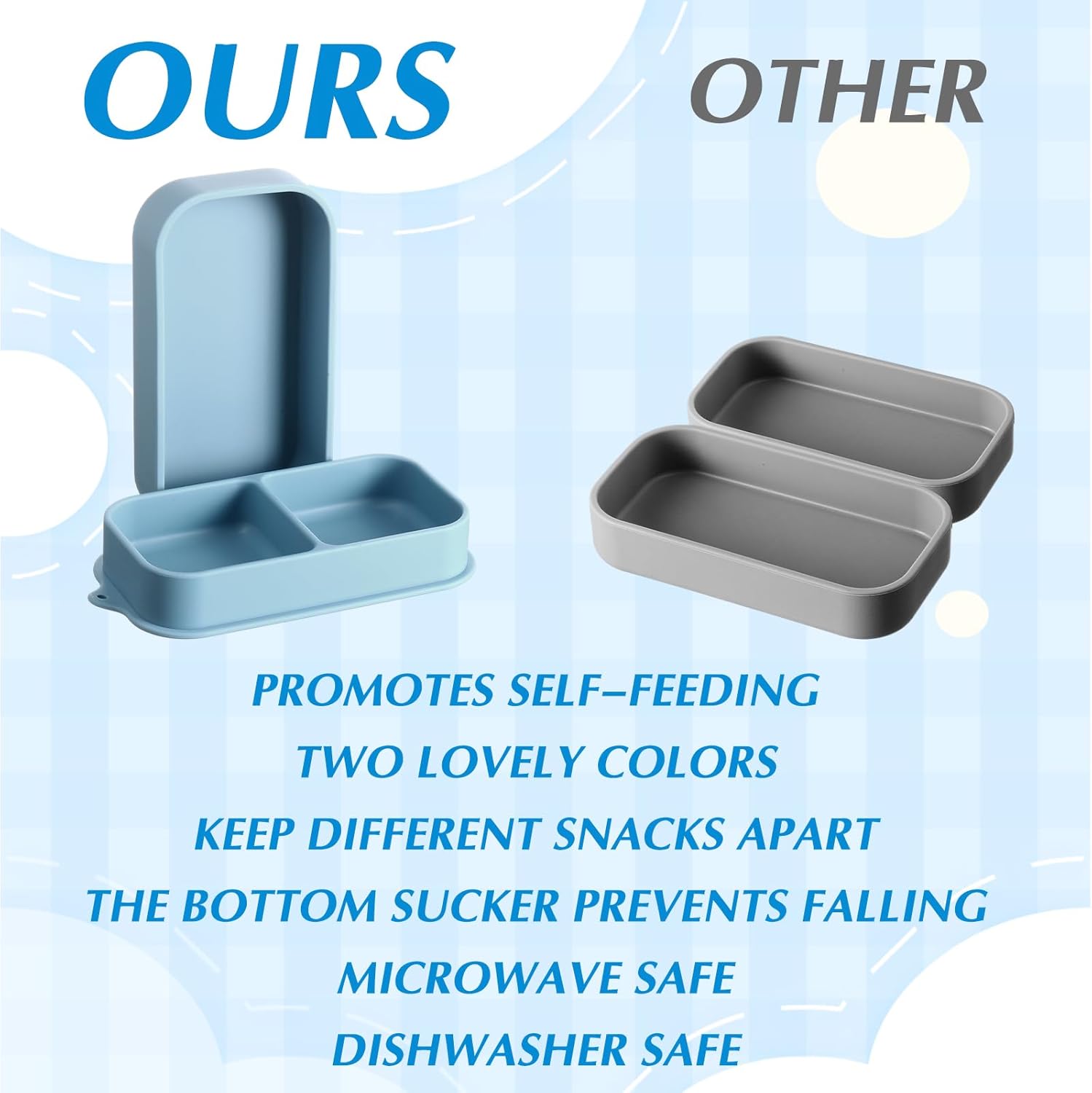 Sensible Designs with Dividers: these divided child bowls with lid have 2 dividers, which may also help you acknowledge completely different meals and preserve meals contemporary; The two boards might be saved together, which may be very house saving and preserve meals divided