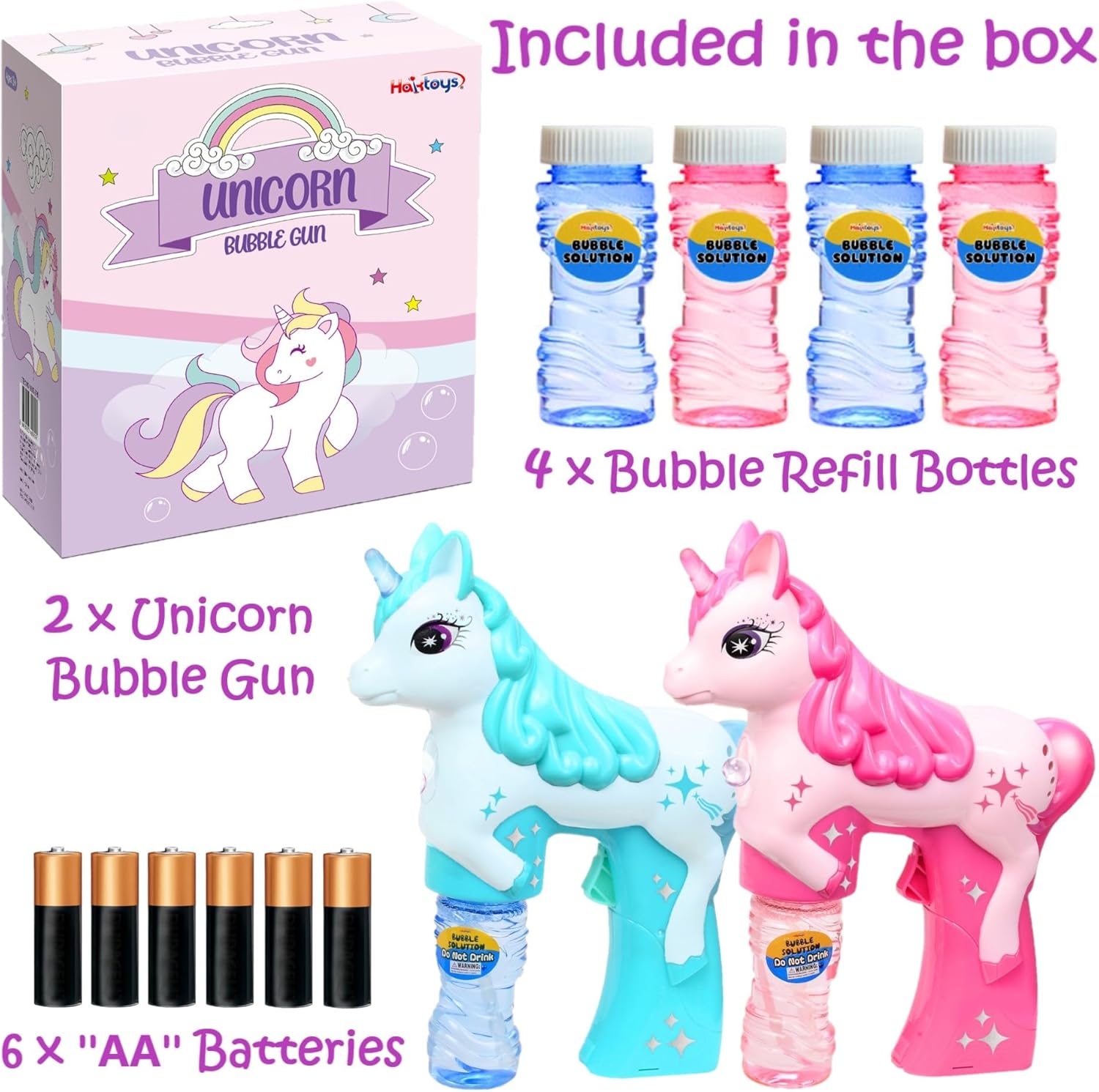 Full Set for Double the Enjoyable – Consists of 2 Unicorn Bubble Weapons, 4 Bottles of Bubble Resolution, and 6 Batteries, so the enjoyable begins proper out of the field!