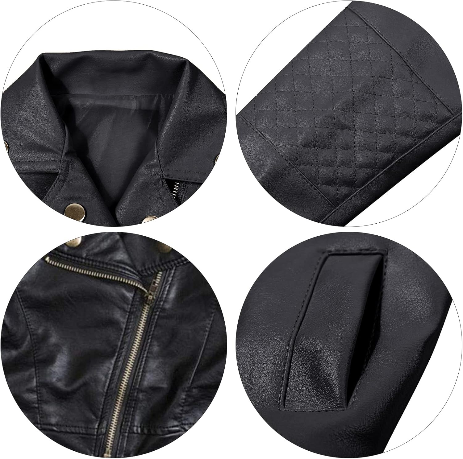 Lapel Collar, Zipper Closure, Sides Pockets, Lengthy Sleeve. Made from Excessive High quality PU Leather-based and Polyester Lining.
