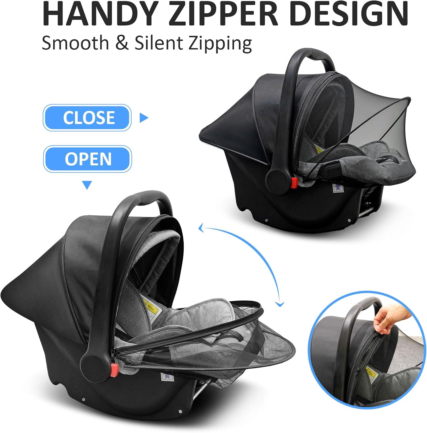 Zipper Improve & Common Match: The twin-track zipperc of child automotive seat cowl helps you to raise child out with out eradicating internet—excellent for fast fuel stops or fussy moments. The elastic edges of automotive seat mosquito internet cowl present common match for many automotive seats – installs securely in 10 seconds.