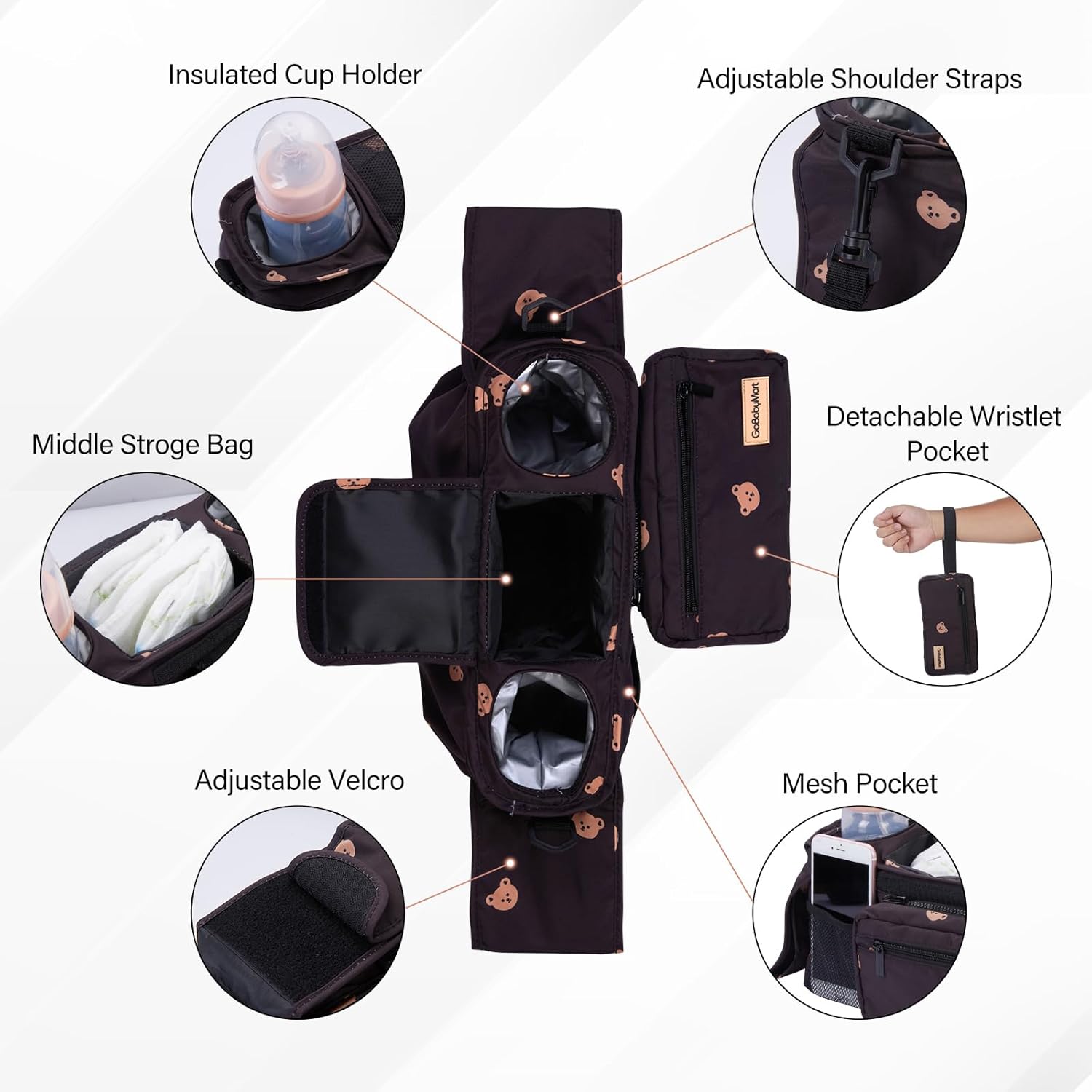 Multi-Use & Removable Design – 3-in-1 Performance: Use as a stroller caddy, shoulder diaper bag with included strap, or detach the wristlet for fast errands or diaper adjustments.