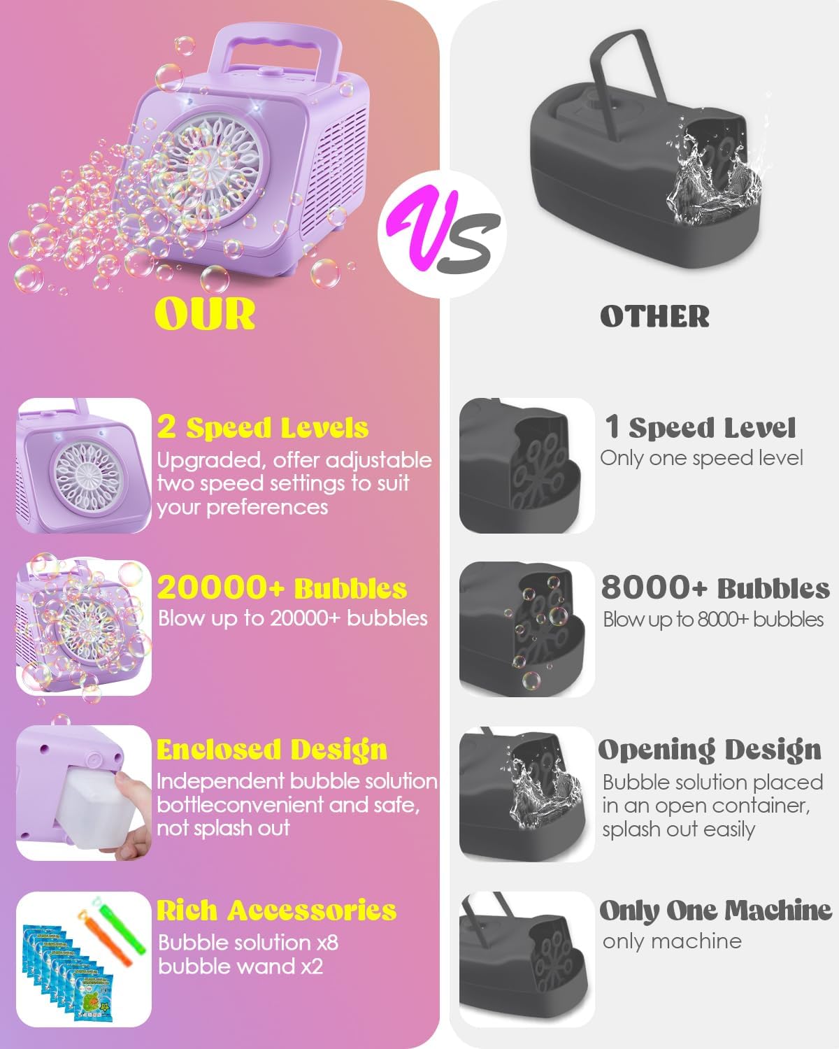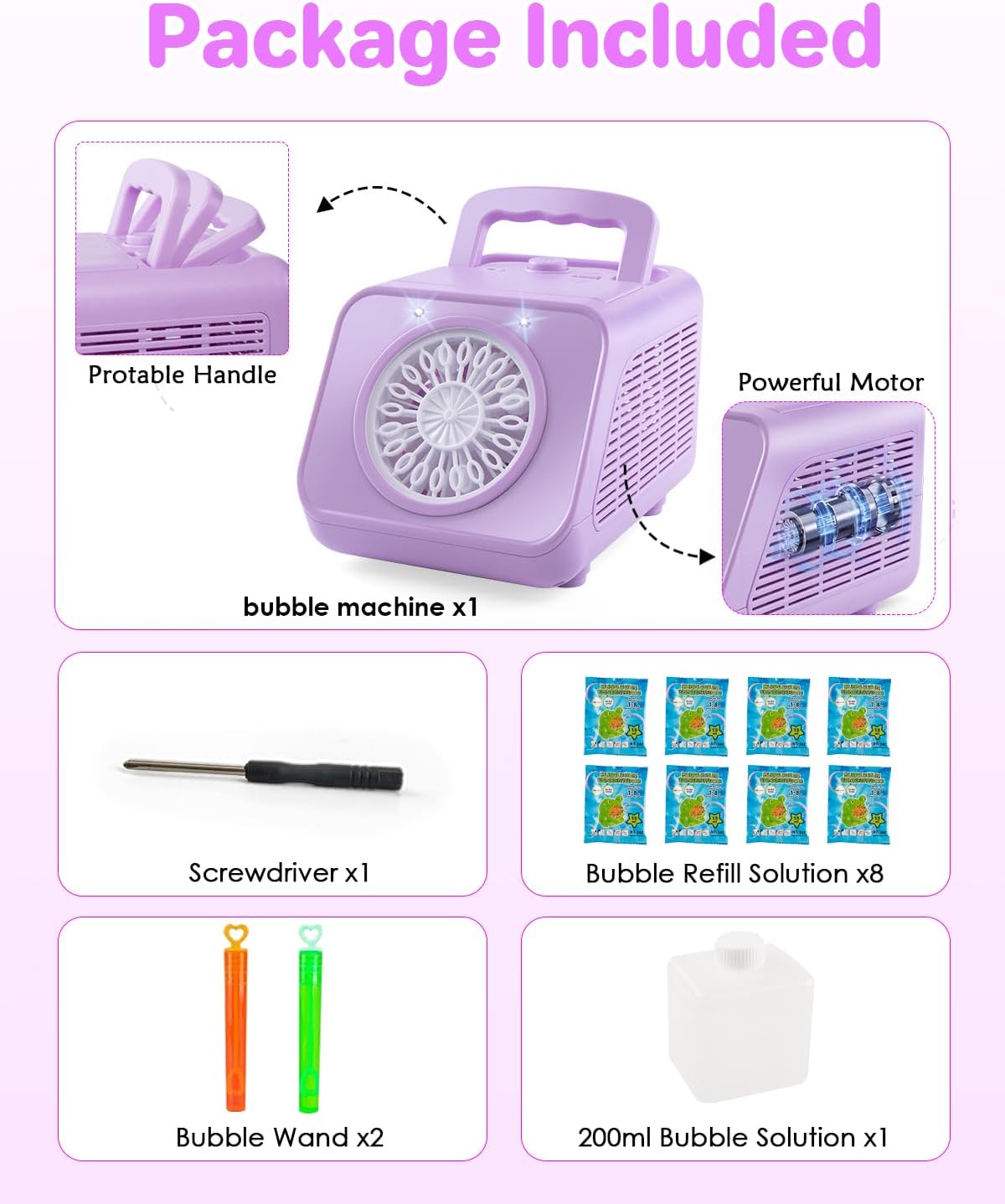 【Good Reward and Well timed After-sales】: Give the present of enjoyable with the Bubble Machine for your beloved!We all know that typically merchandise might not meet your expectations,however we stand by the standard of our bubble machine and supply assured satisfaction service.When you’ve got any issues or questions on your buy, please don’t hesitate to message us!We’re all the time right here that can assist you and supply a full vary of after-sales companies to make sure that you’re fully happy together with your buy!