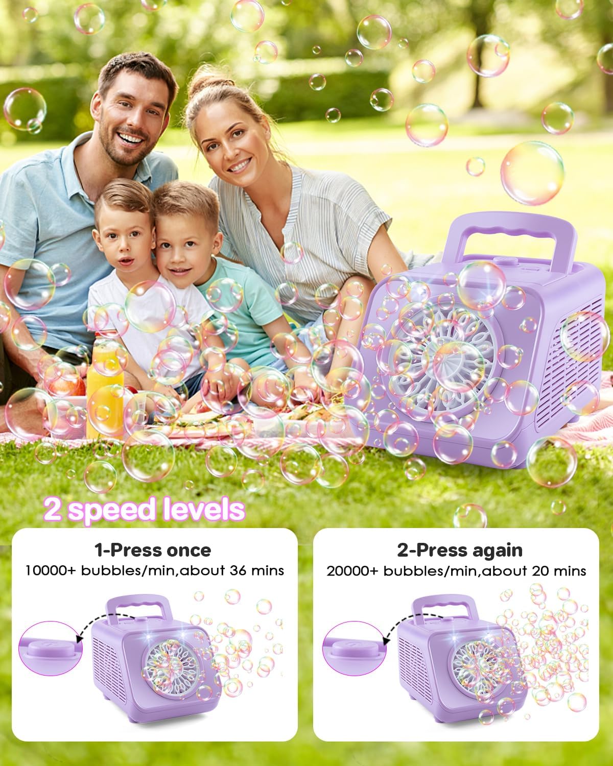 【Limitless Bubbles and Leisure】: Our bubble machine creates many dazzling bubbles to supply countless entertaining time and expertise the magic of bubbles in an entire new method for kids and adults, these mesmerizing bubbles can catch the attention of youngsters and encourage their creativity and creativeness, which is the proper method to create a magical and thrilling environment for any event.