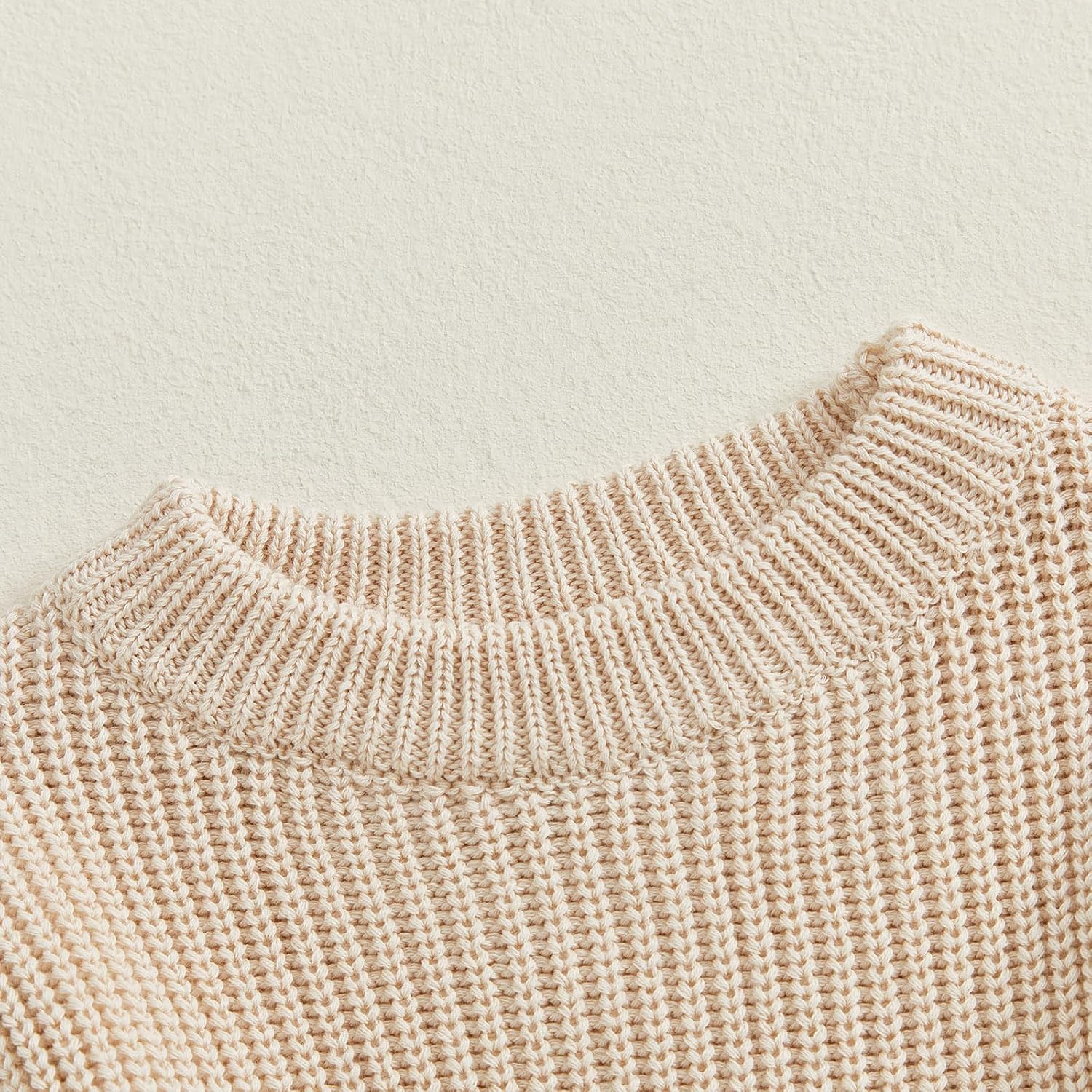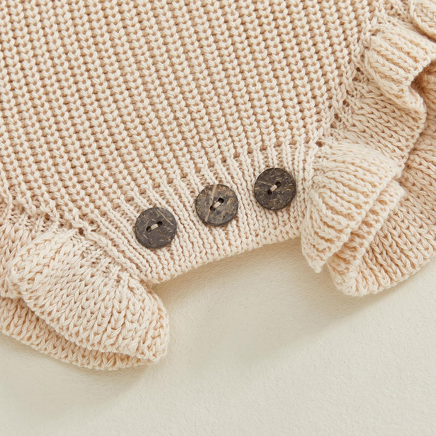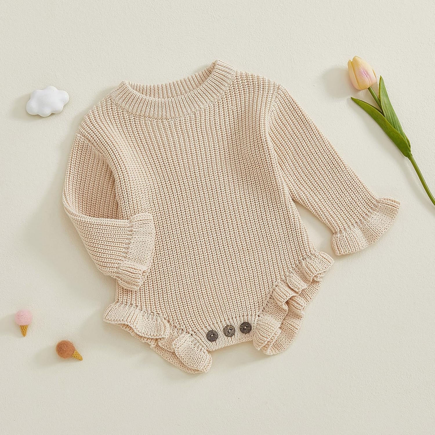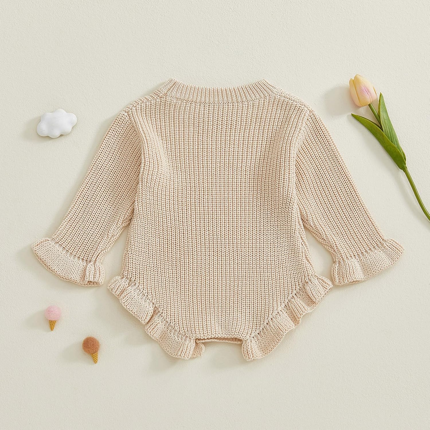 Child Fall Knit Romper Stable Shade Lengthy Sleeve Spherical Neck Ruffled Sweater Jumpsuit