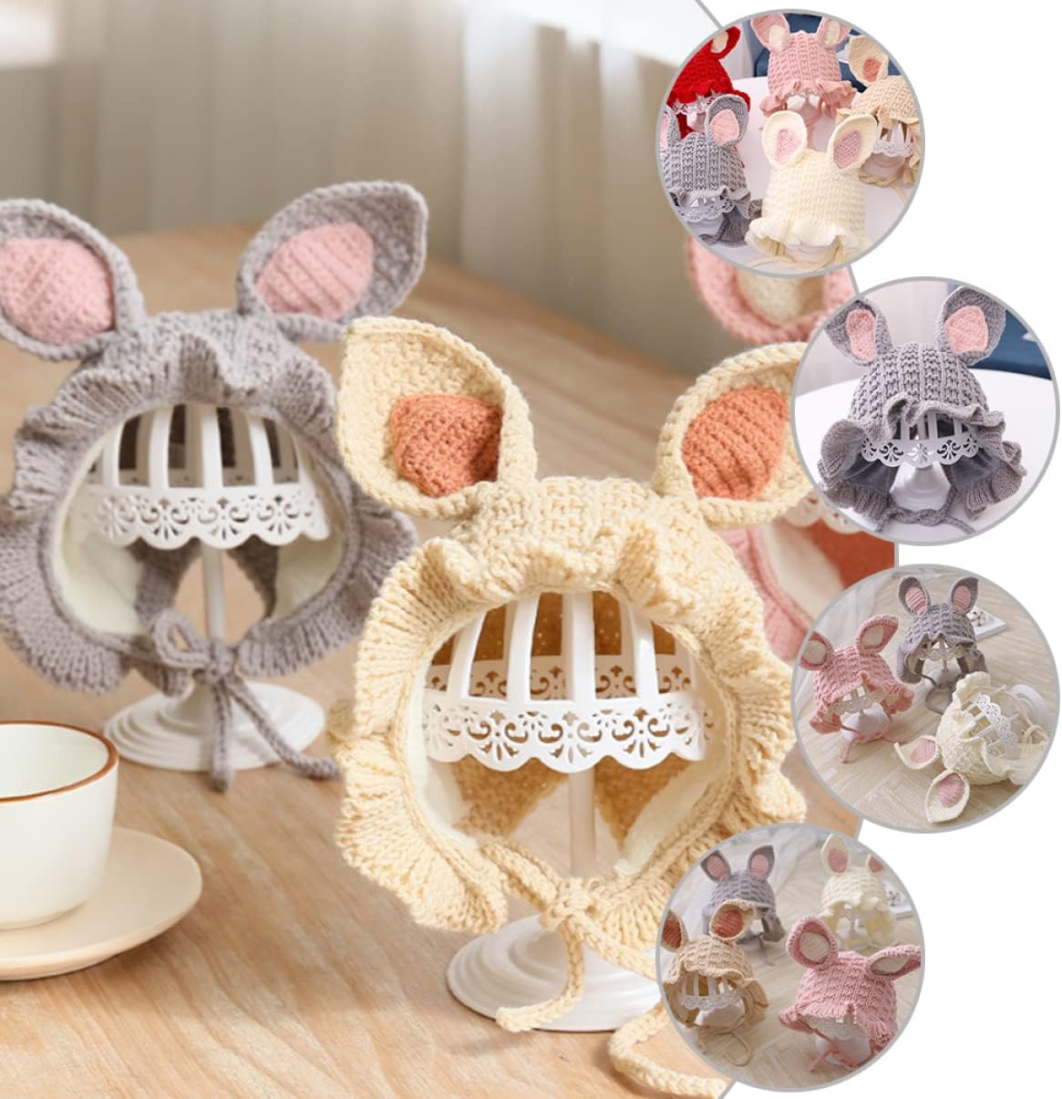 – Lacing, adjustable neck circumference and lotus leaf edge, rabbit ears, pretty Knitted Hat.