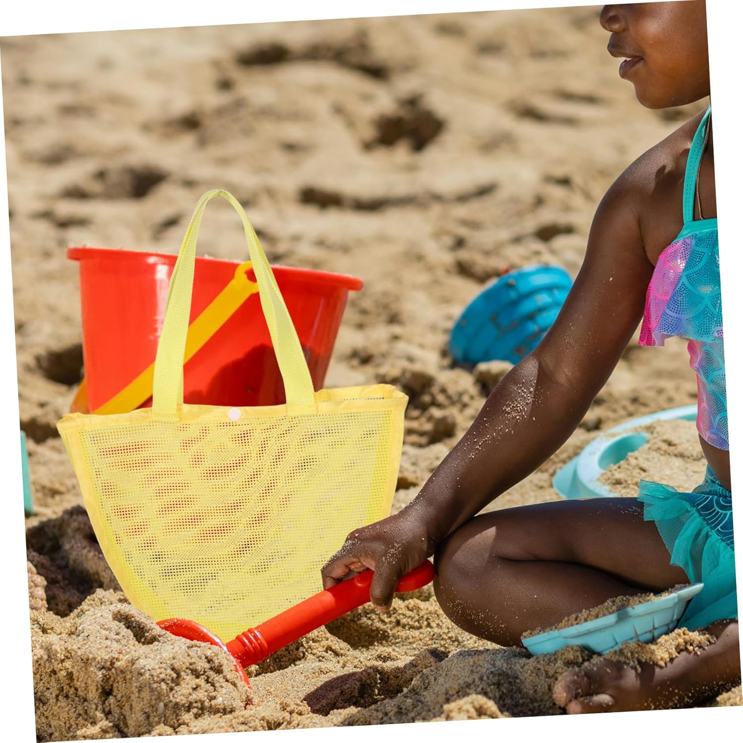 – -Pleasant Measurement: Designed for small arms, these seaside luggage are sized for , permitting them to simply collect their favourite finds mesh tote bag