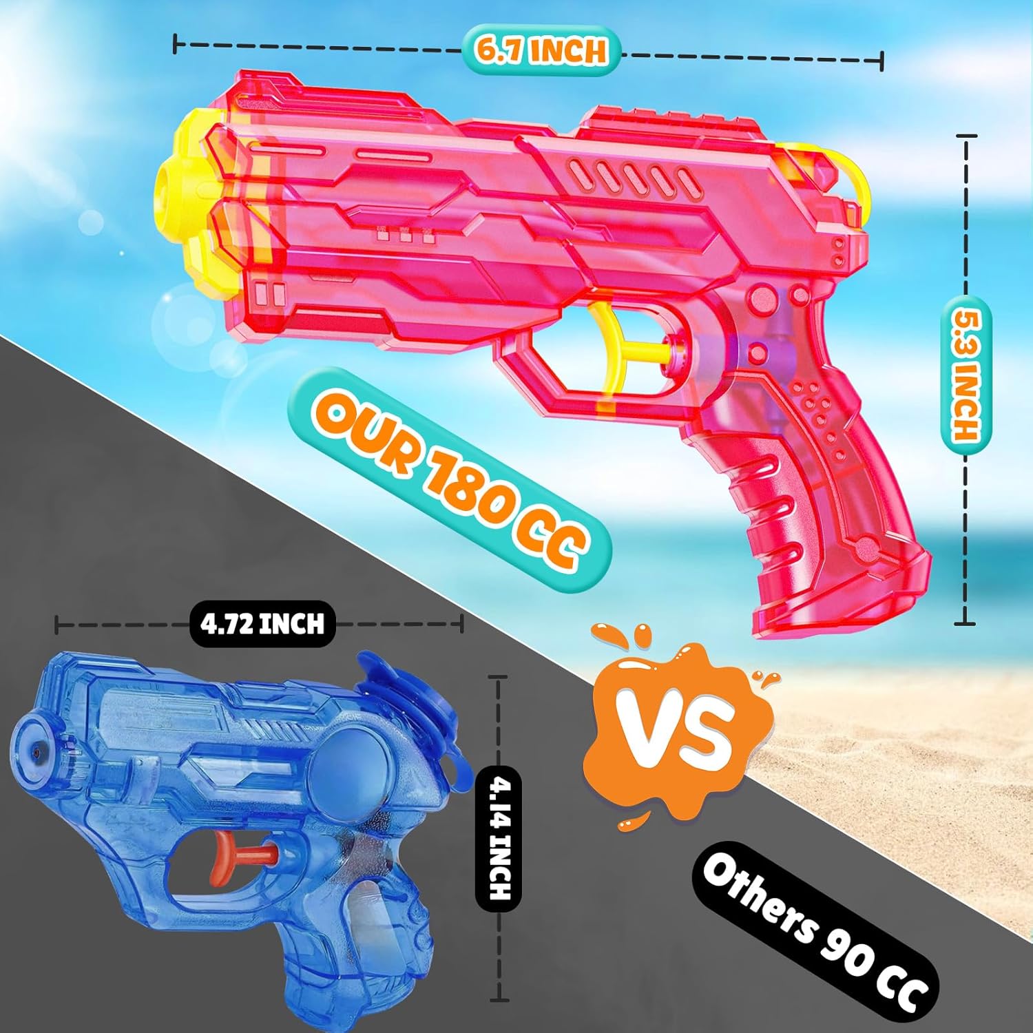 Fast Refill 180 cc, Visible Water Capability: The water gun is supplied with a fast and simple filling perform and a clear design that makes the water degree clearly seen! Youngsters can simply fill as much as 6.3 fl oz (180cc) of water (for practically 50-70 launches) by merely opening the plug! Boys can absolutely take pleasure in water gun fights with out frequent refills. The clear design of the children water weapons permits youngsters to observe the water degree in actual time, enhancing the water sport enjoyable!