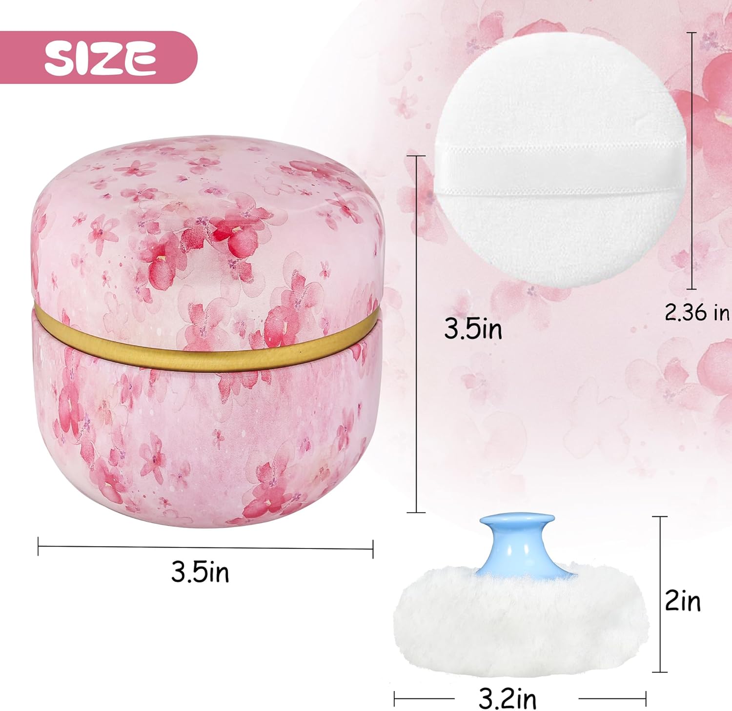 Measurement: The powder field is 3.2″ diameter/width.The powder puff is 3.15″/8cm in diameter and a pair of”/5cm in peak.The small powder puff is 2.36″/6cm in diameter.