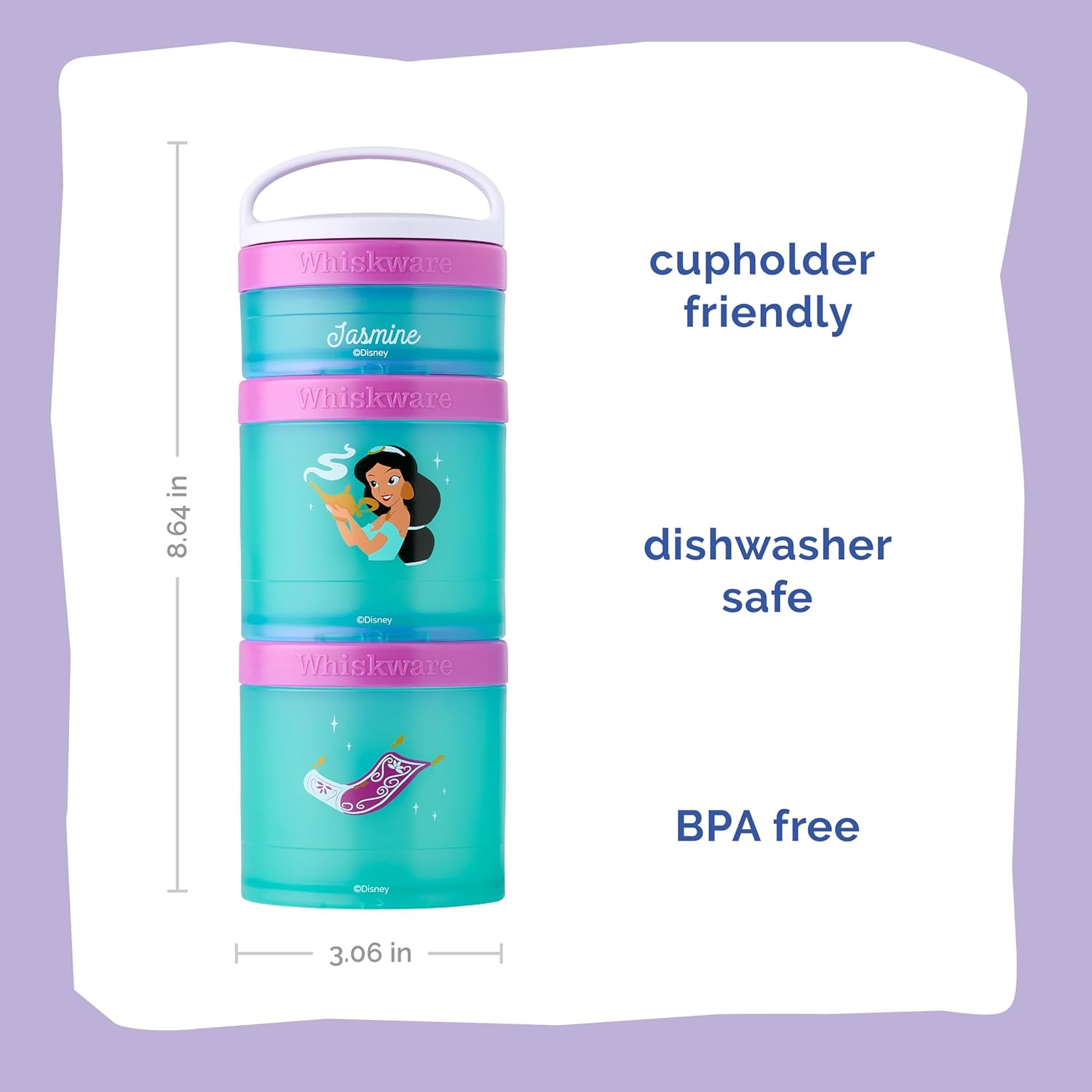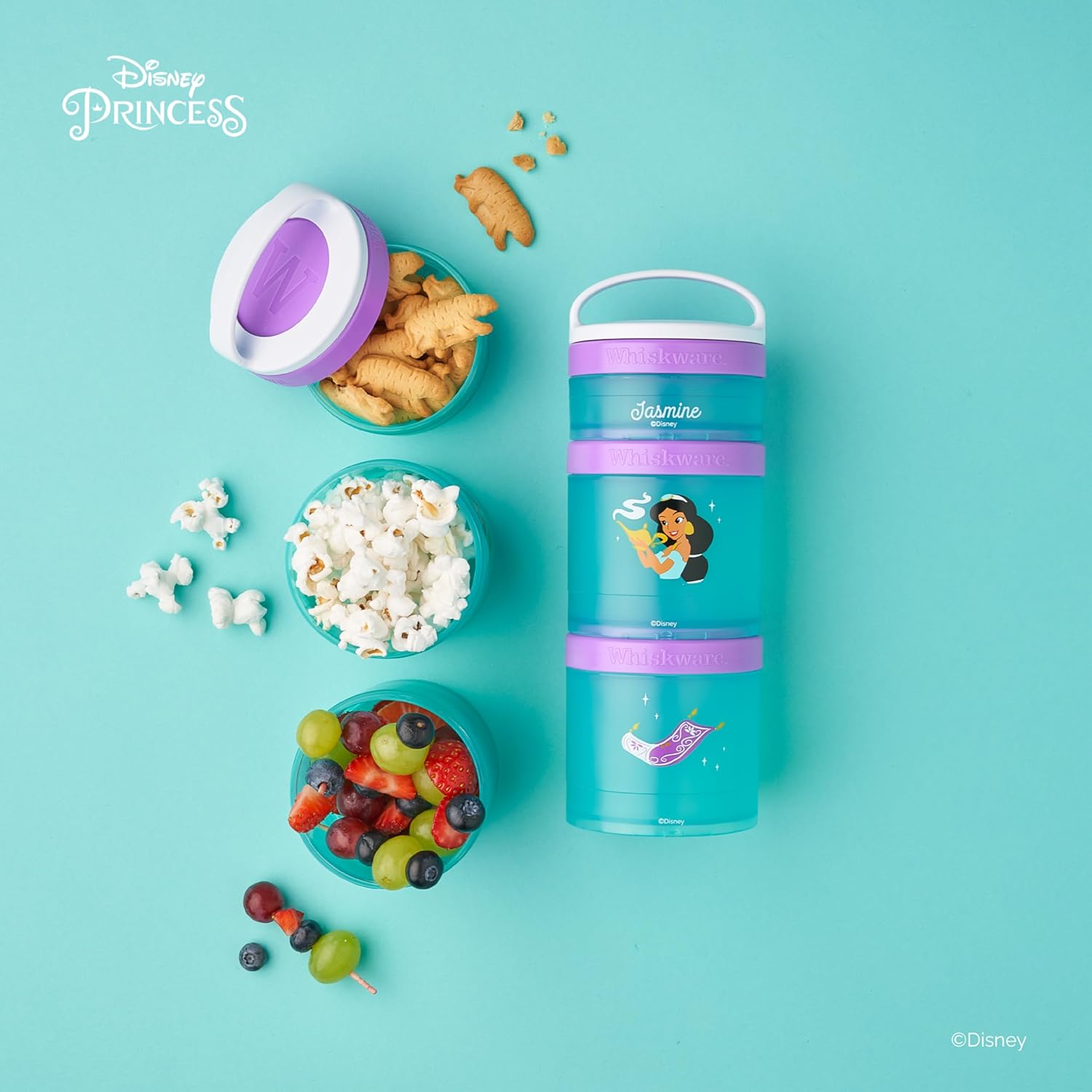 Whiskware Disney Princess Aladdin, Stackable Snack Containers for Kids, 3 Stackable Snack Cups for School or Travel, Backpack and Cupholder Friendly, Jasmine and Magic Carpet