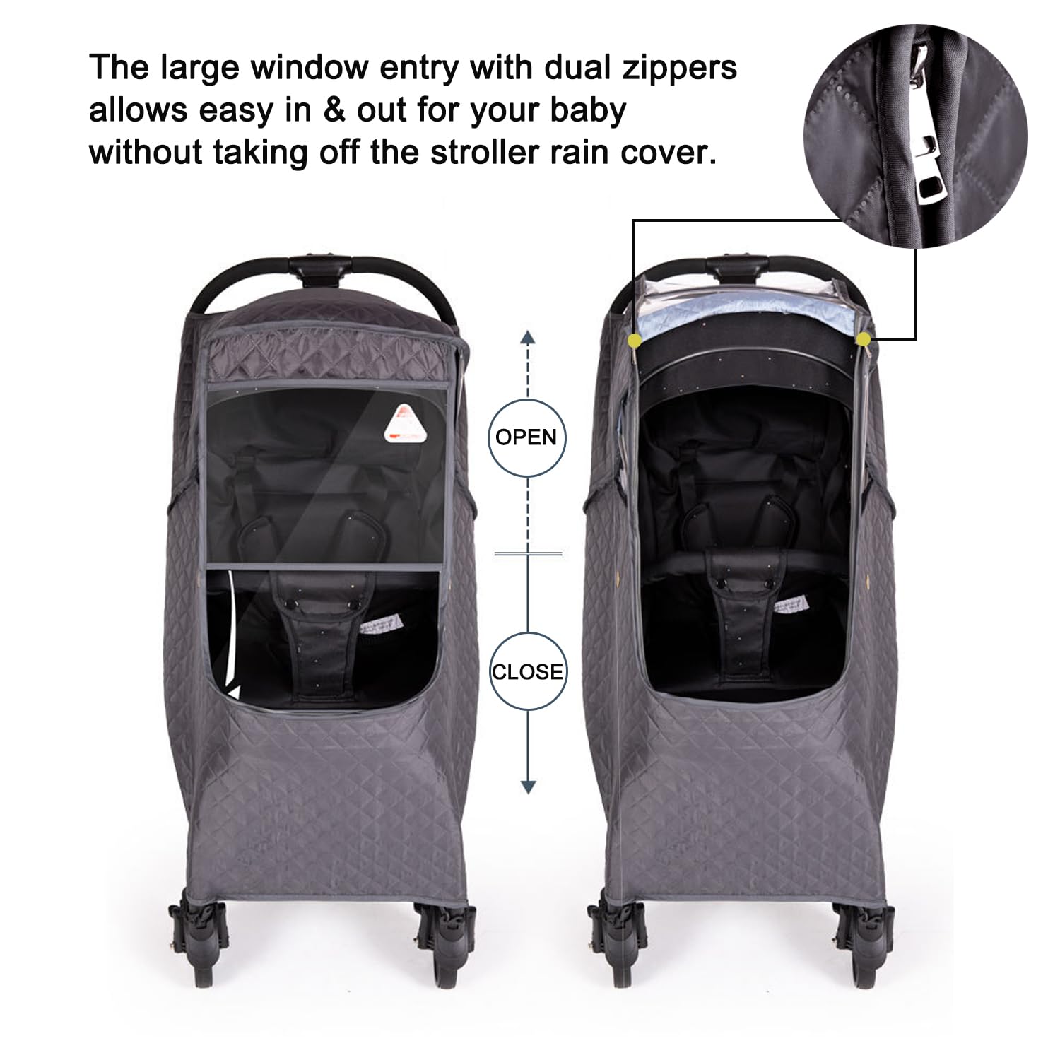 【UV PROTECTIVE WINDOW FOR EASY IN & OUT】Product of PVC materials, adopted UV protecting characteristic, the HD perspective home windows on three sides give your child a large sight view. The massive window entry with twin zippers permits straightforward in & out on your child with out taking off the stroller rain cowl.