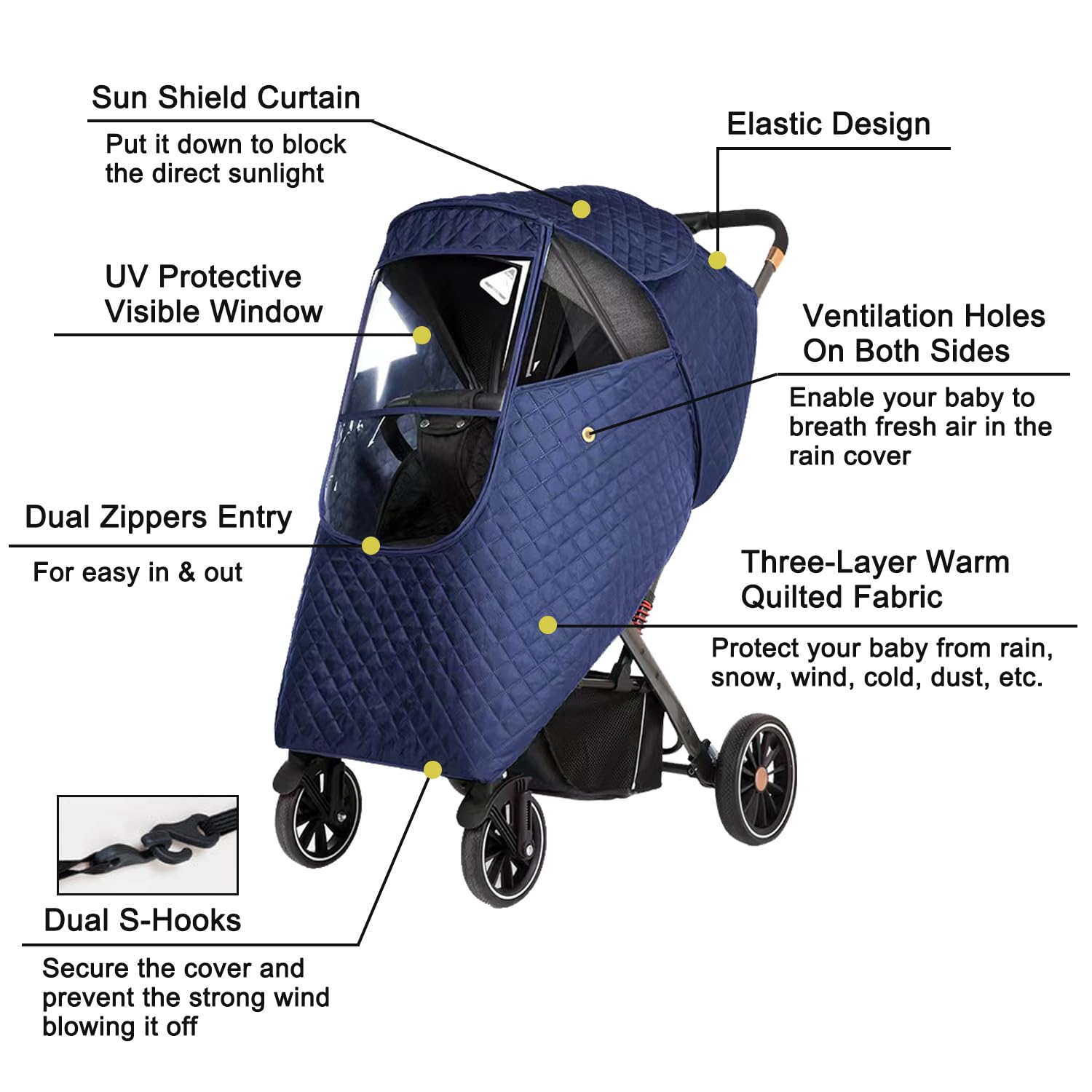 【GIVE YOUR BABY ALL-ROUND PROTECTION】This full protection stroller winter cowl offers superior safety on your child when out of doors strolling. It covers stroller from high to backside to successfully defend your baby towards harsh climate like rain, snow, wind, chilly, mud and so on. Design with solar protect curtain for offering further safety towards direct daylight, offers a extra comfy atmosphere for child whereas sleeping within the stroller.