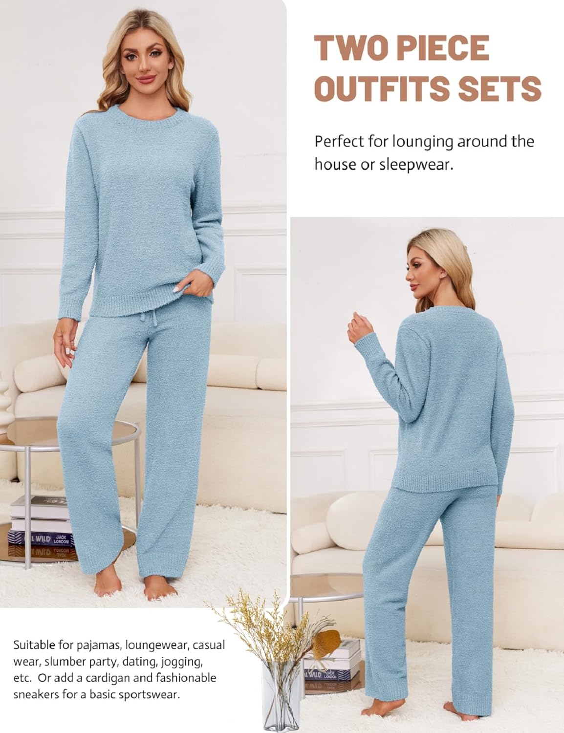 VXVGER Womens Fuzzy Fleece Pajamas Set 2 Piece Cozy Pjs Lounge Set