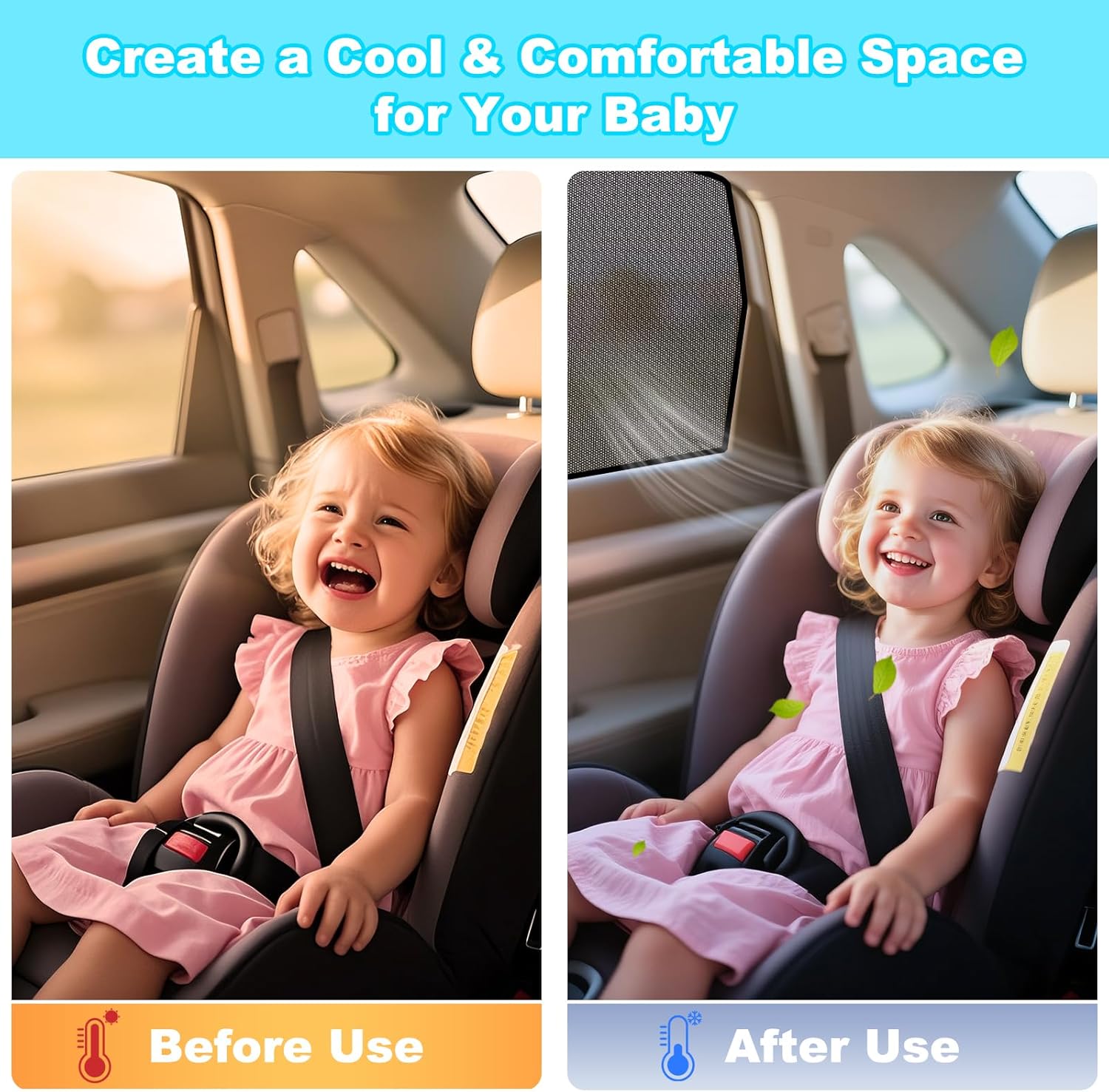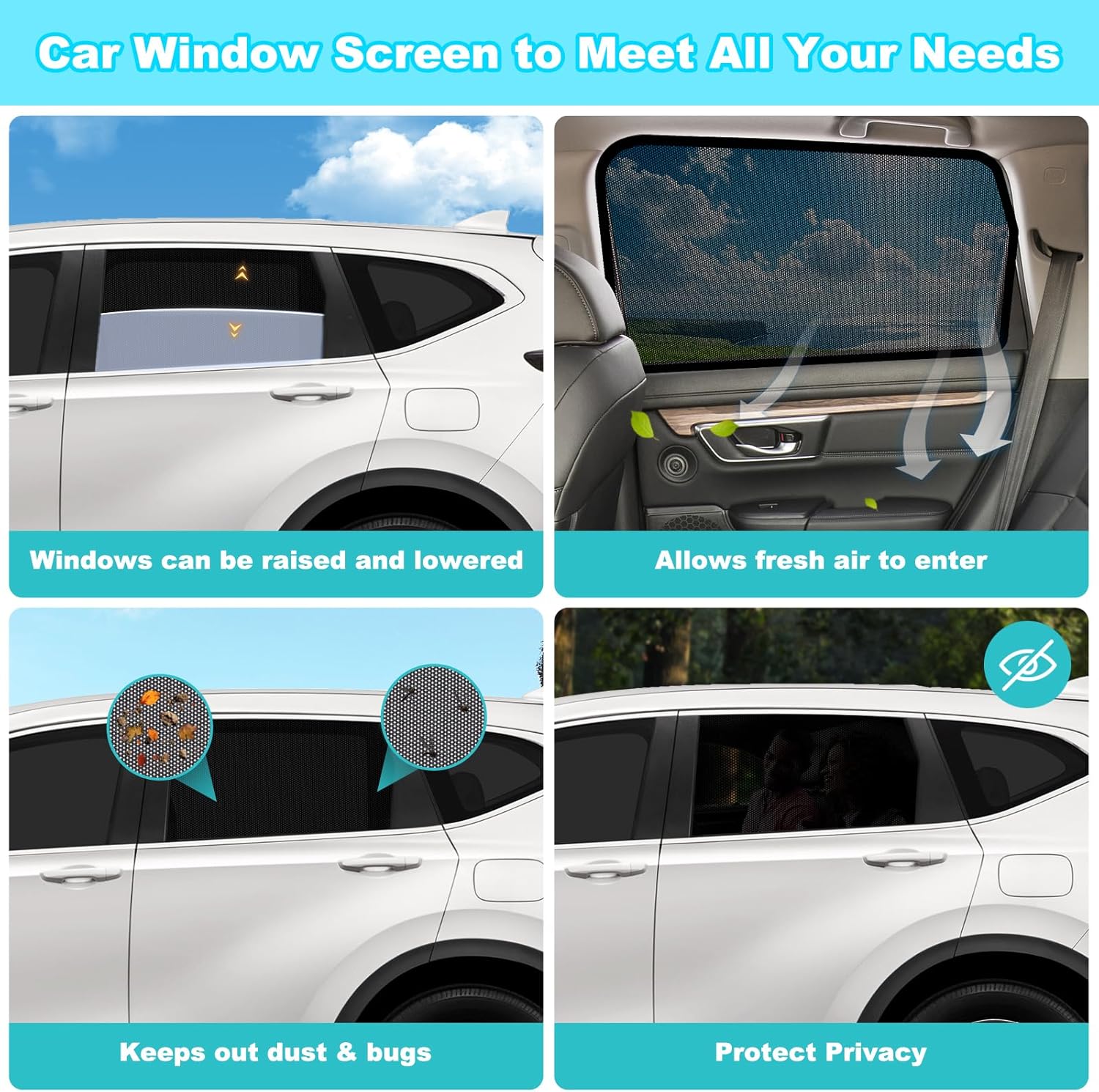 Automobile Window Shade for Child & Pets: Made with premium dual-layer mesh, our automobile sunglasses block out harsh daylight, UV rays, and extra warmth—making a cooler and safer atmosphere for infants, youngsters, or pets within the again seat. The breathable materials ensures correct airflow whereas providing gentle safety from mud and particles—very best for lengthy drives or automobile tenting setups