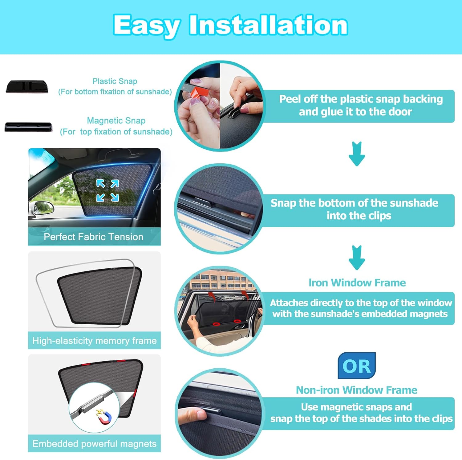 Fast Magnetic Set up & Safe Match: Designed for easy setup, the window shade for child in automobile options sturdy magnetic edges that simply snap onto your door body. For non-magnetic surfaces, we embody adhesive-backed buckles to make sure a secure, wind-resistant maintain, these snap shades for automobile home windows are an ideal present for campers or busy mother and father