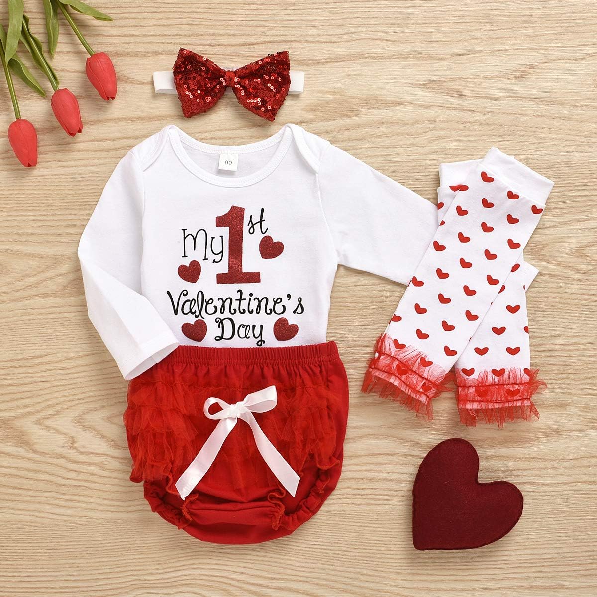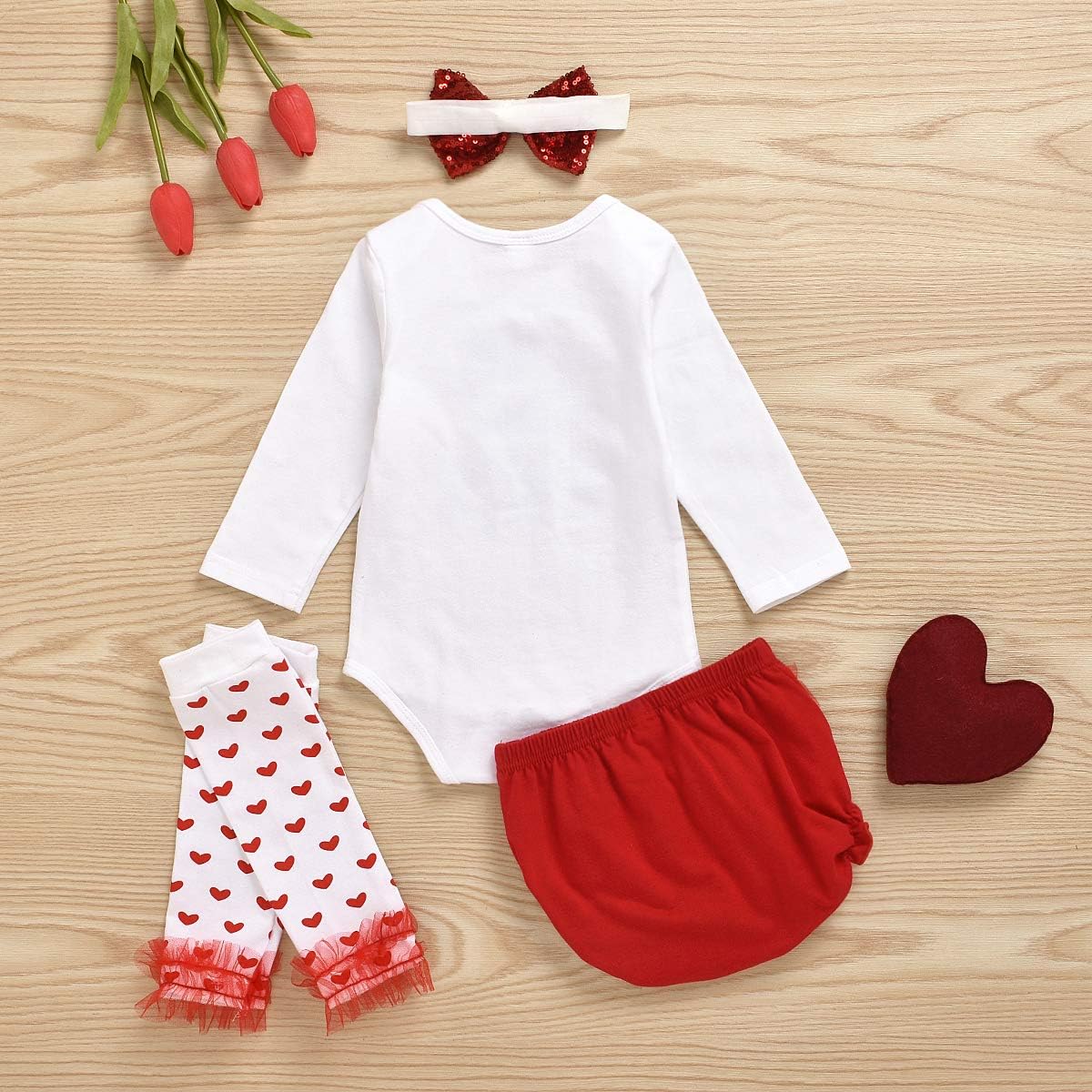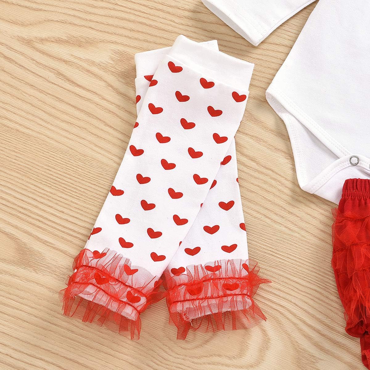 XFGLCK Newborn Baby Girls Valentine Outfit Letter Print Bodysuit Romper +Tutu Skirt +Leg Warmers+ Headband Clothes Set