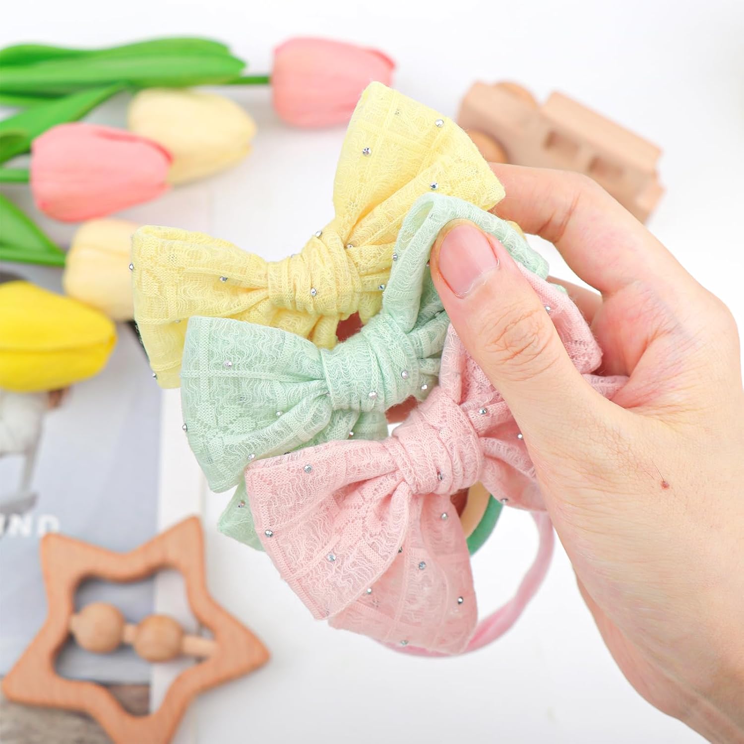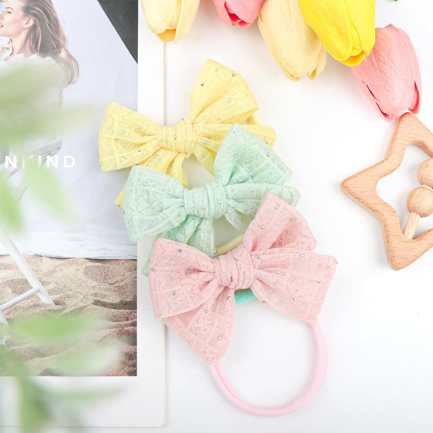 Elegant Design: The design of those hair bands is just fascinating. The lace material with rhinestone gildings offers the hair bow a fragile look, making simply the appropriate stability of sparkle to catch the sunshine with out overwhelming, including a contact of easy glamour to your baby’s coiffure. It is like adorning her hair with a mini masterpiece of class.