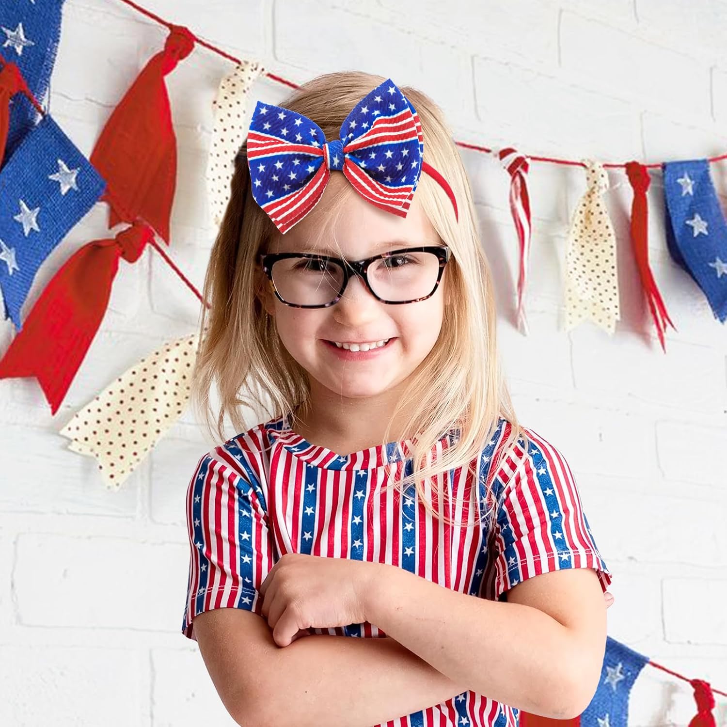 Premium Materials: The 4th of july child bow is made of soppy velvet and Child Headbands are constituted of stretchy and delicate long-lasting nylon cloth