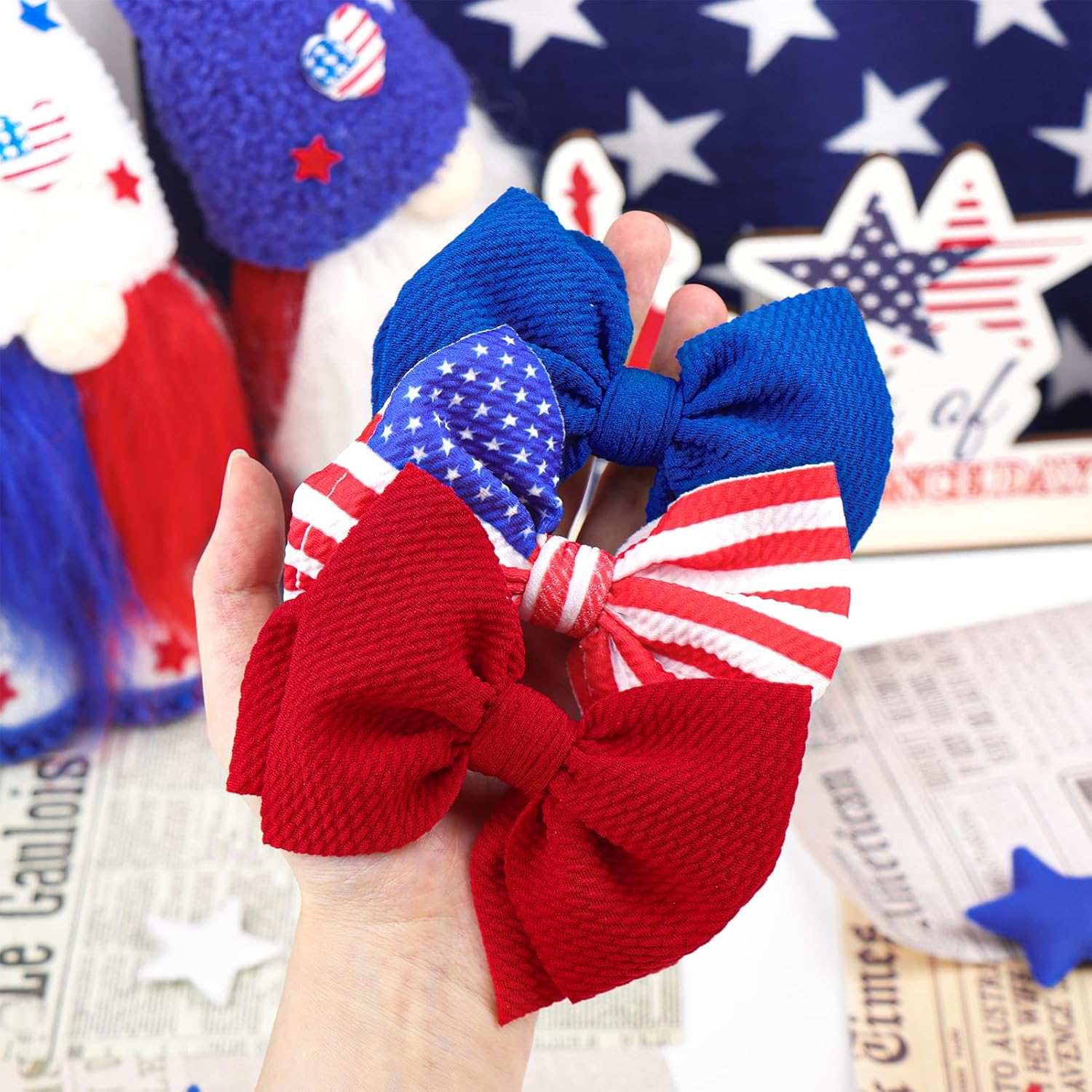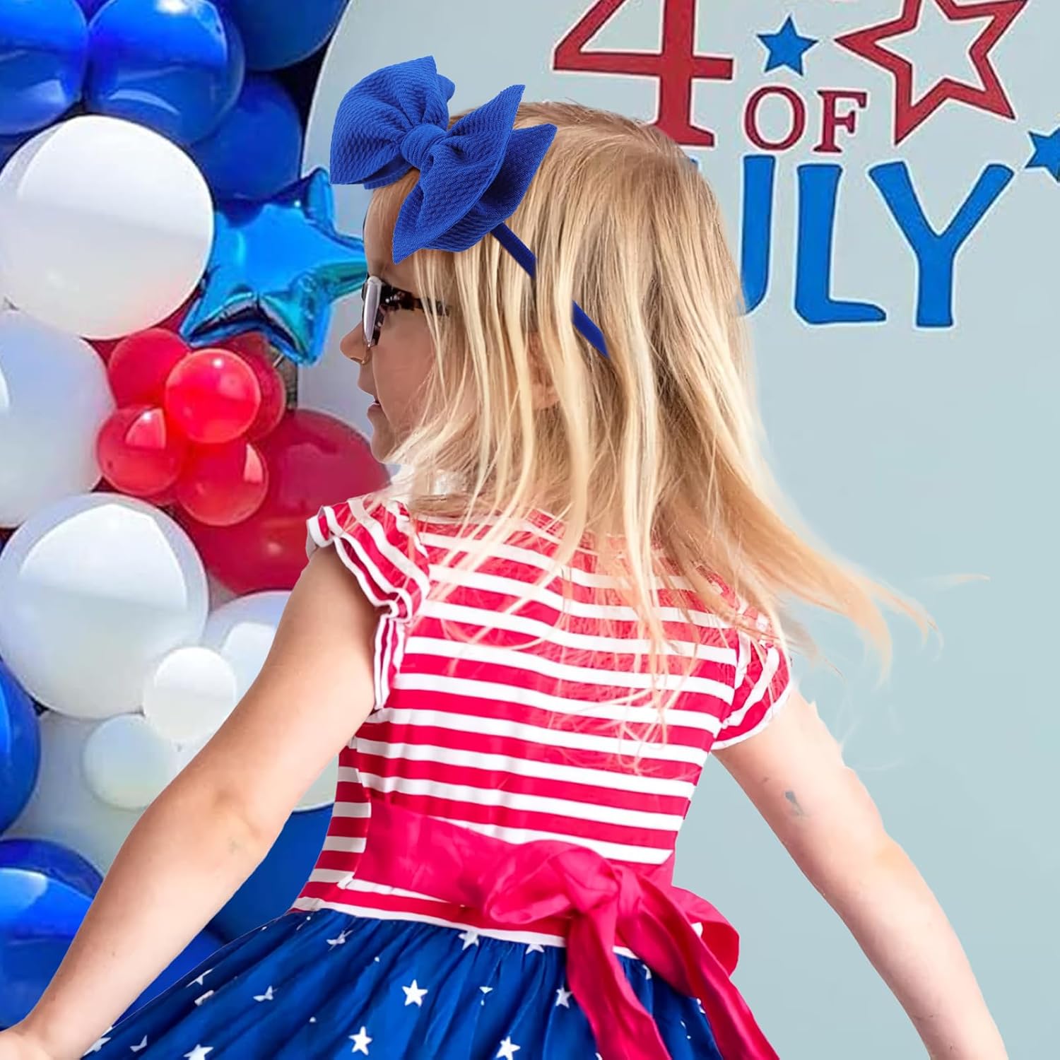 Beautiful Handmade: These handmade 4th of july headbands hair bows are made in a pet-free and smoke-free venue. In contrast to all these mass-produced child headbands. Our 4th of july hair bows headbands with bows don’t include any glue, they’re knotted by hand by expert employees and made with love
