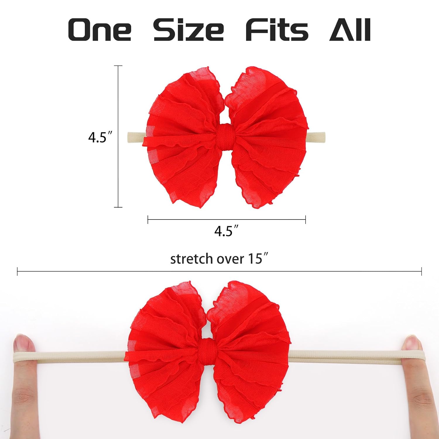💞Dimension :100% handmade, no-glue, more healthy. Bow size: approx 12cm/4.5″, nylon band unique circumference: approx 25cm/10″. Nylon headband has good deformation capacity, might be simply stretched to fifteen inches. They will not slip off new child’s head,it may be hand stretched and stretches as much as an infants, toddlers, little ladies head measurement with out loosening.
