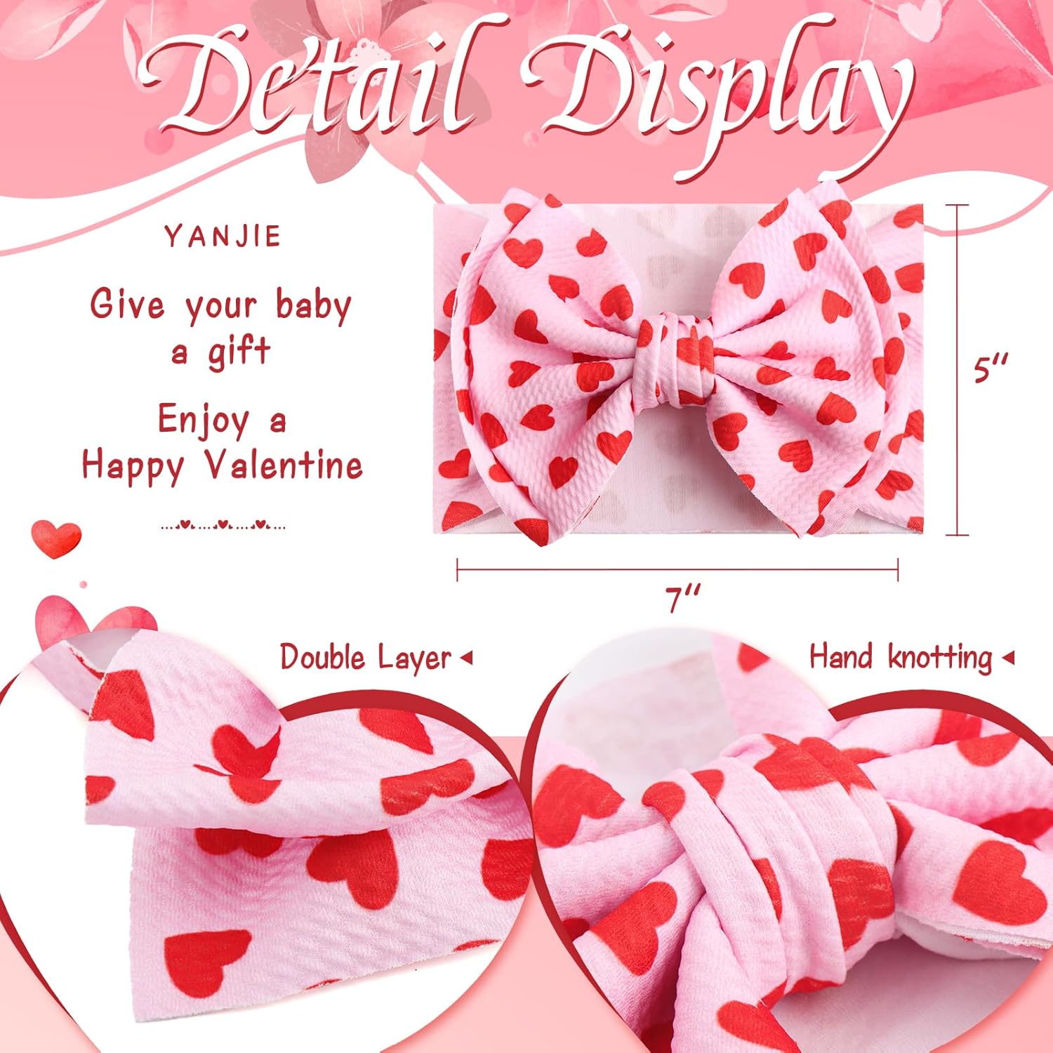 Delicate Comfy: 7 inches one piece knot double layer bow, extra three-dimensional and delightful. The center factor sample on the bow will make your child extra playful. Your candy child cannot wait to go to the Valentine’s celebration !