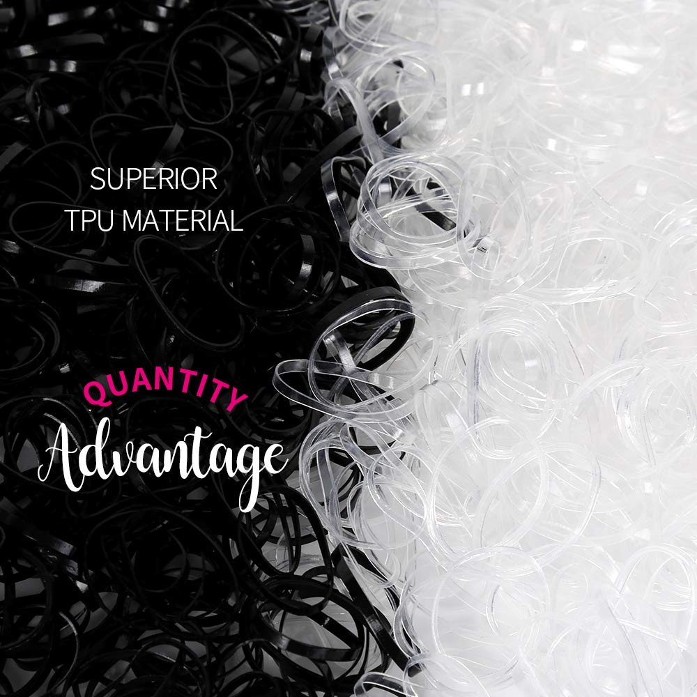 Lots Amount: 4000pcs small hair elastics in complete, 2000pcs clear rubber bands and 2000pcs black elastic hair bands, sufficient amount to satisfy your every day wants, a should have accent good for varied hairstyles