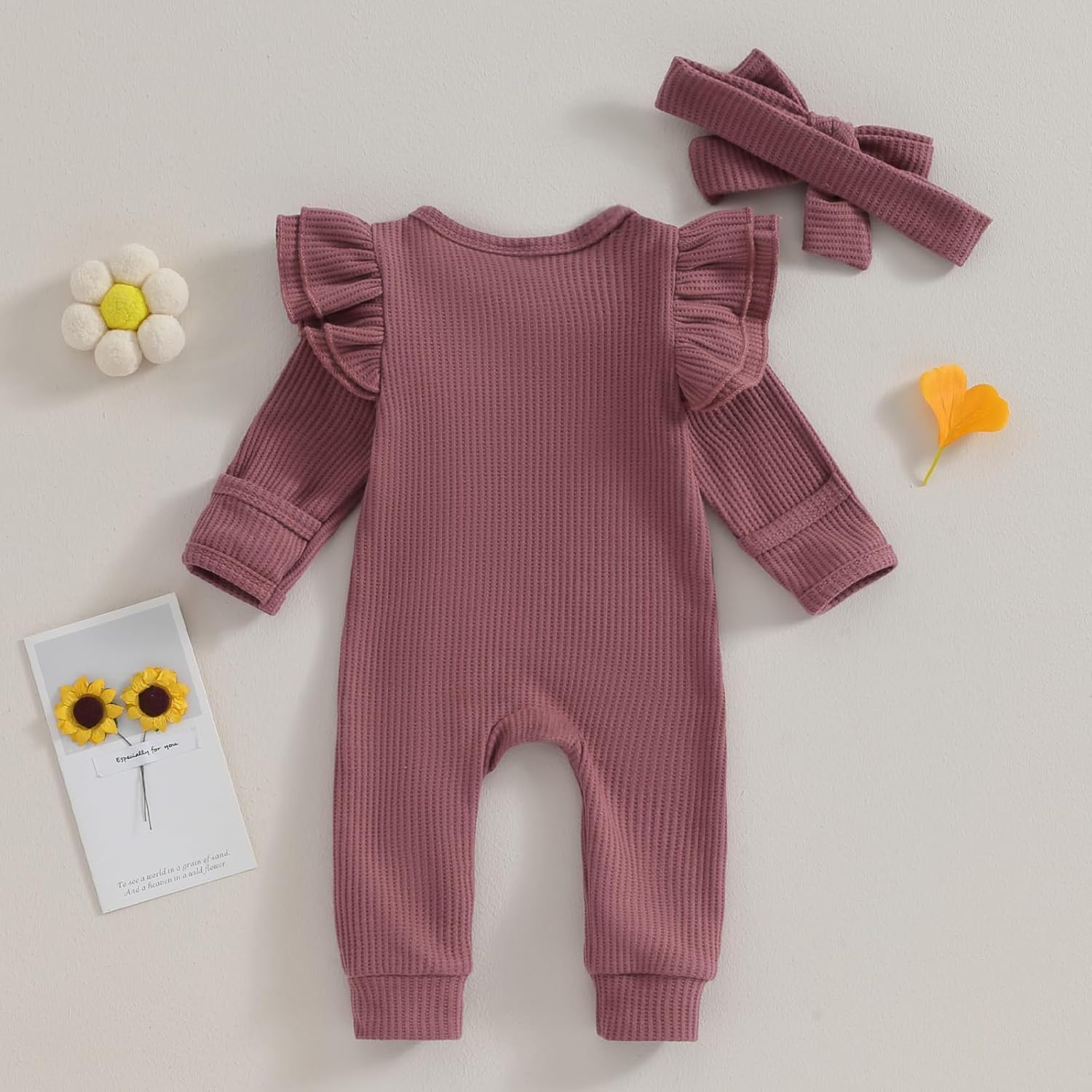 Toddler Lady Autumn Jumpsuit Stable Shade Spherical Neck Flying Sleeve Ruffled Zipper Romper with Bow Headband