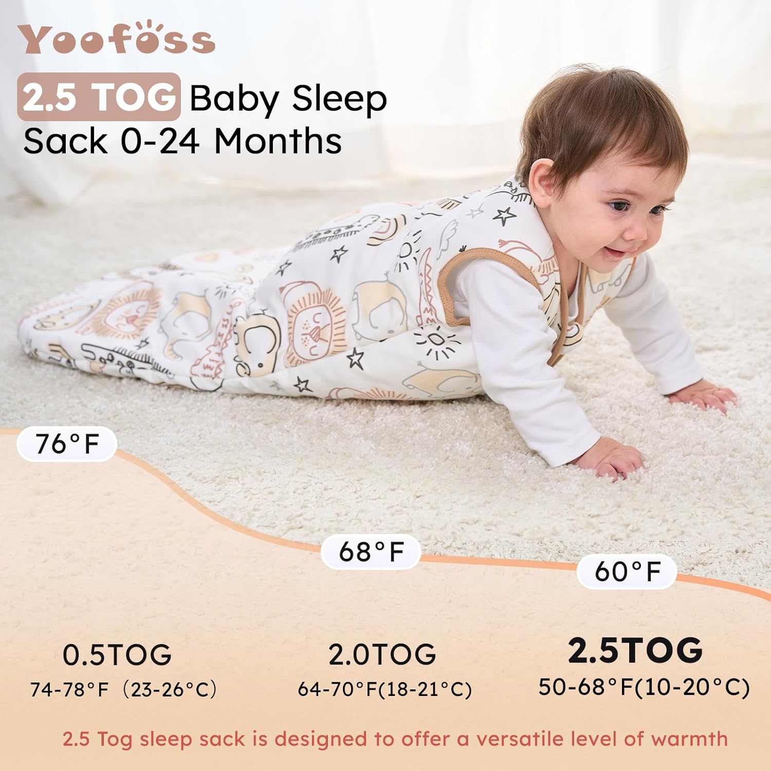 2.5 TOG for Heat: with a 2.5 TOG ranking, our sleep sacks meticulously designed for the chilly seasons, excellent for room temperatures starting from 50-68°F. This distinctive child wearable blanket is thoughtfully crafted to create a comfortable and welcoming sanctuary in your baby.