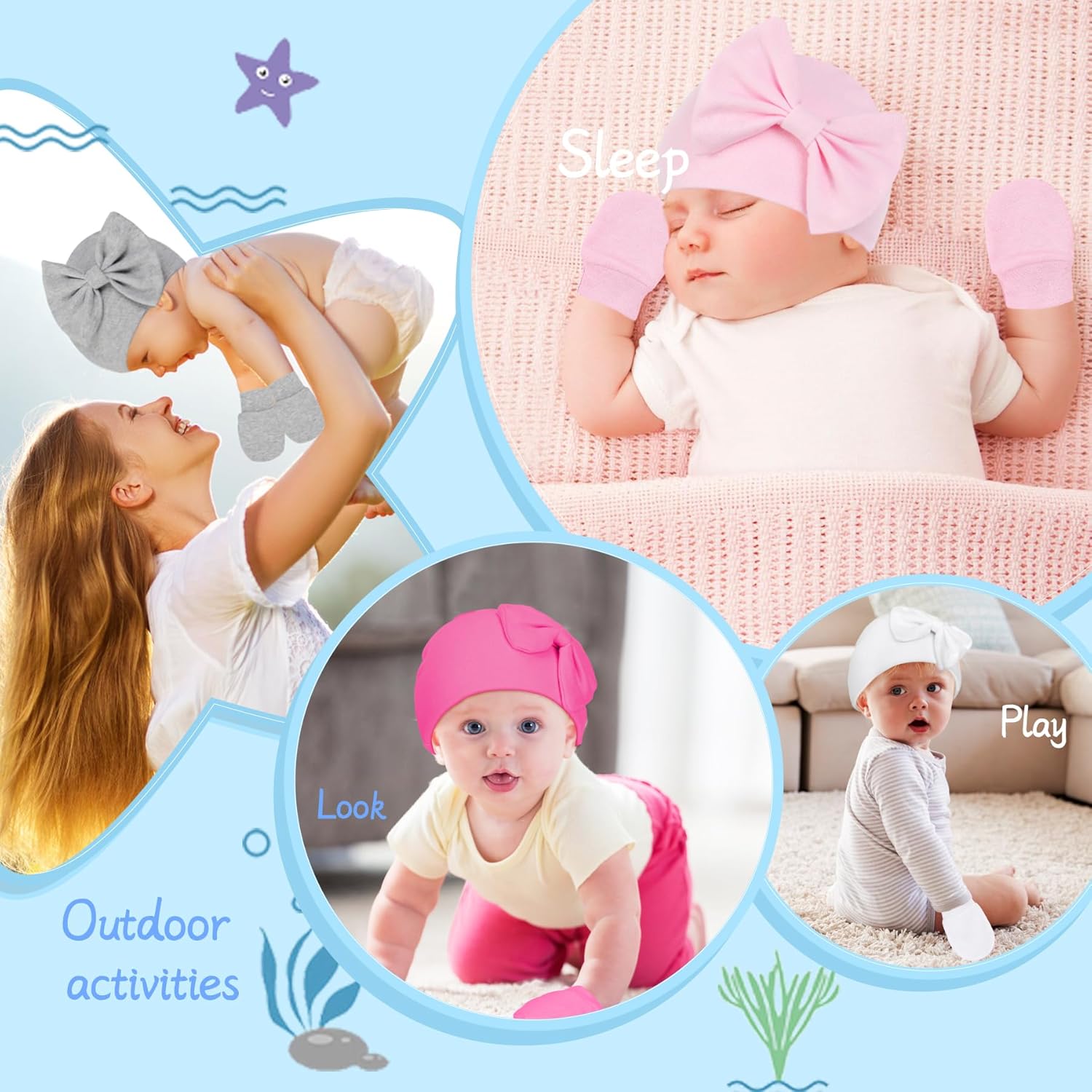 Zando Baby Newborn Girl Beanie Hat with Big Cotton Bow and Mitten Set – Winter Hat for Girls & Boys