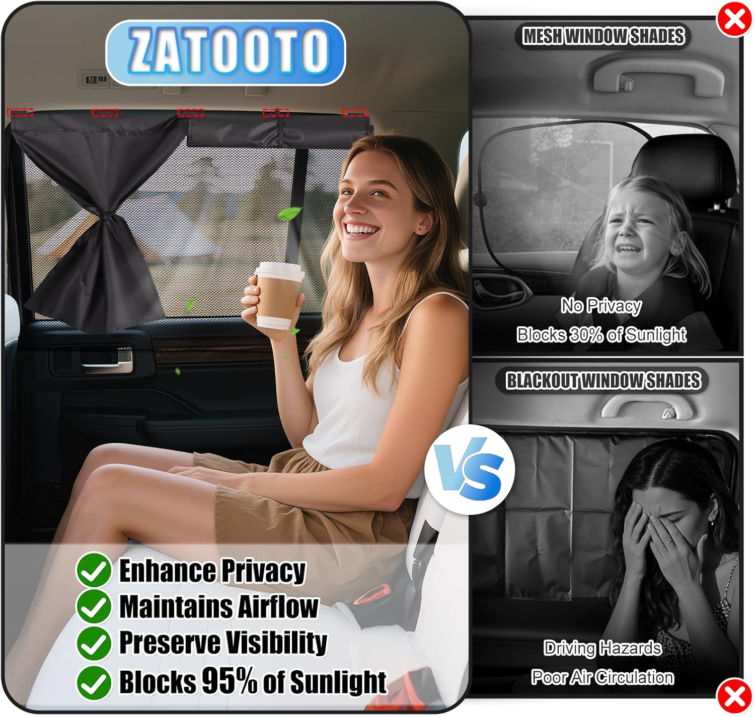 Twin-Layer Design with 3 Adjustable Modes: The ZATOOTO automotive window shades function an modern dual-layer system with a translucent outer mesh and opaque interior fabric. Simply regulate by way of straps for 3 modes: full blackout (100% shading), half-shade (privateness + airflow), or absolutely clear (clear views)