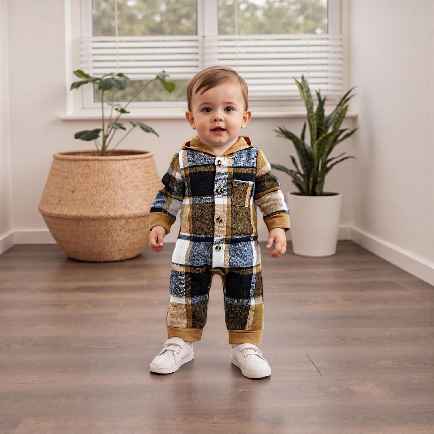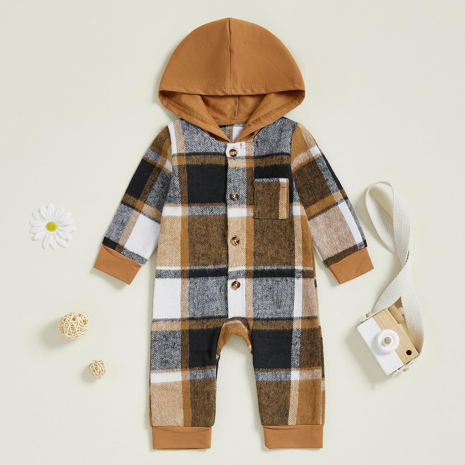 Toddler Child Hooded Romper Cute Trendy Versatile Plaid Lengthy Sleeve Jumpsuits New child Boy Lady Garments