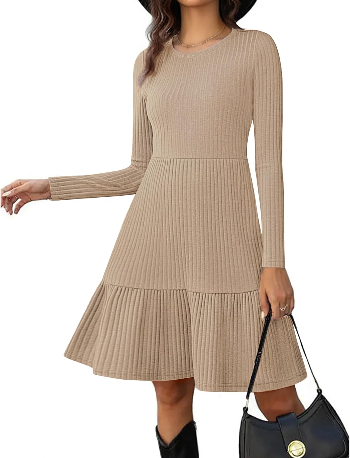 Fall Winter Gown for Girls Lengthy Sleeve Knit Ribbed Crewneck Sweater Gown