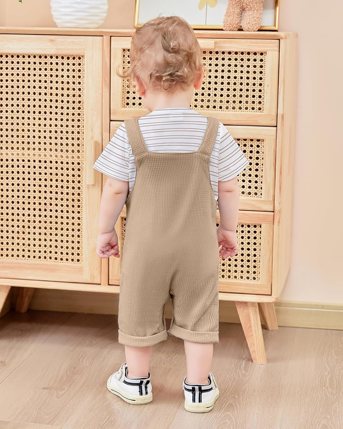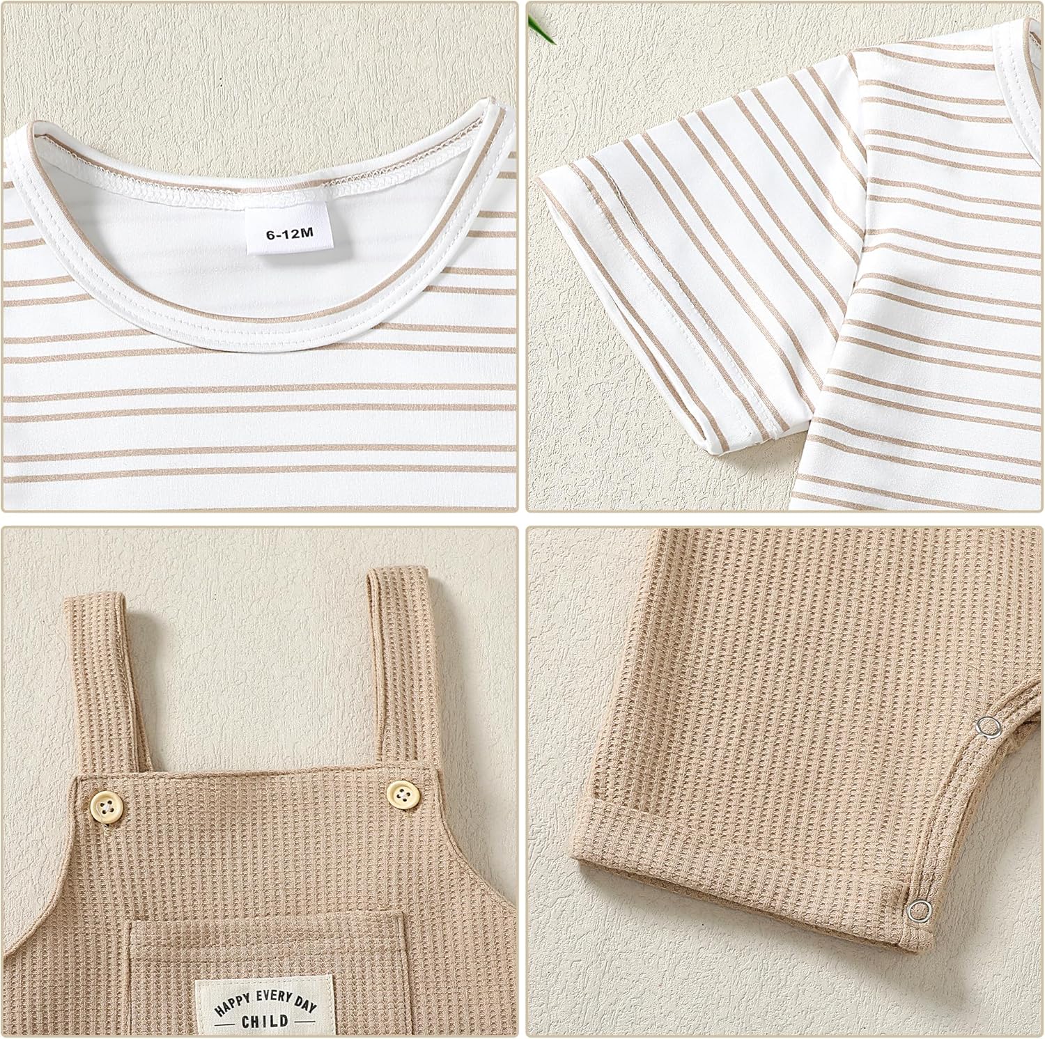 Toddler Child Boys Garments Summer time Outfit Stripe T-Shirt Shortall Romper Set Cute Jumpsuit Strong Coloration Onesies 6 12 18 12-18 18-24 24 month 2-3T 2T 3T 1 yr outdated Overalls swimsuit Clothes birthdays valentines day onesie brief sleeve T-shirt